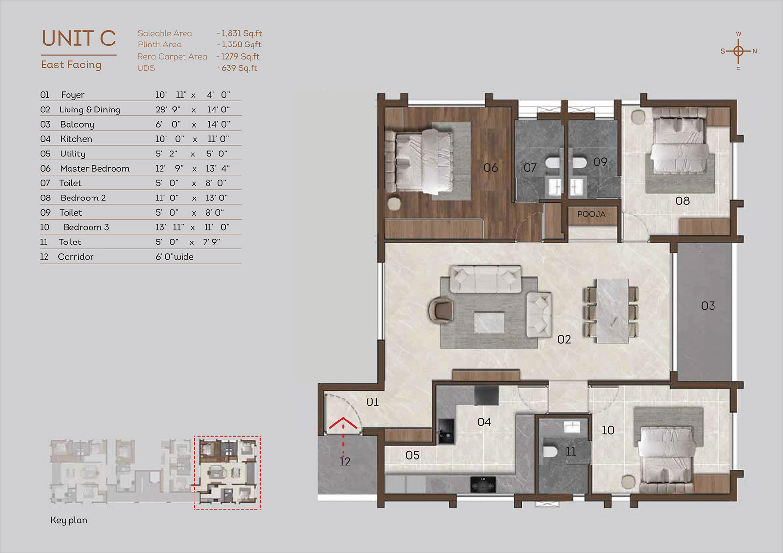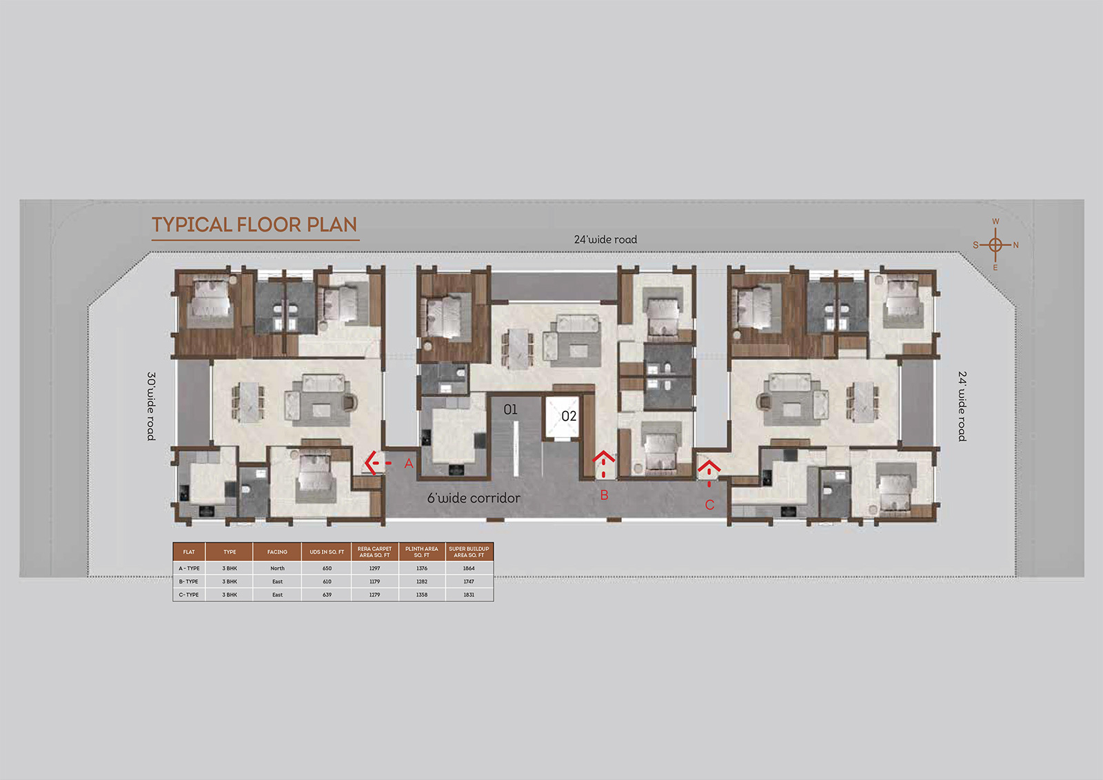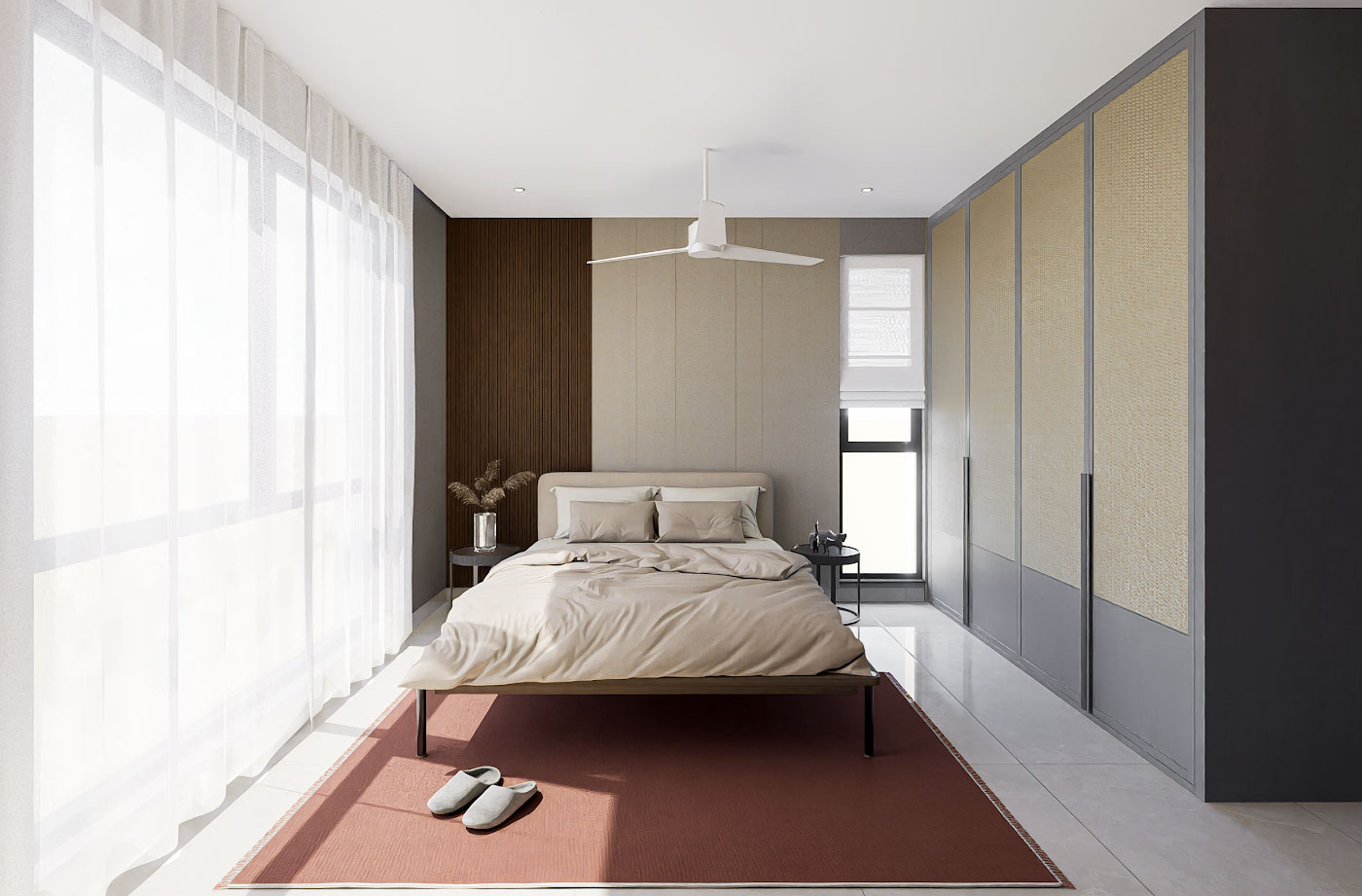 Master bedroom SPC wooden floor and other rooms 1200mm x 600mm double charged vitrified nano finish tiles – Kajaria / simpolo / Equiv.